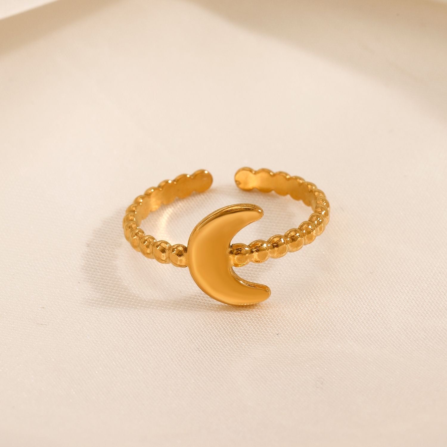 Expertly crafted with stainless steel, this open ring features a half moon design perfect for any occasion. Add a touch of sleek elegance to your outfit with this stunning piece.