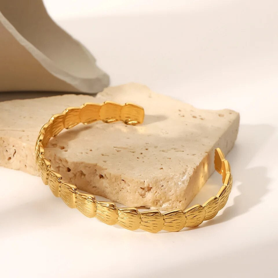 Experience the elegance of the ocean with our KIRA CONCHA BANGLE. Crafted from durable stainless steel, this bangle is part of our Ocean Breeze collection and features beautiful under the sea pieces, including a delicate conch shell. Perfect for adding a touch of coastal charm to any outfit.